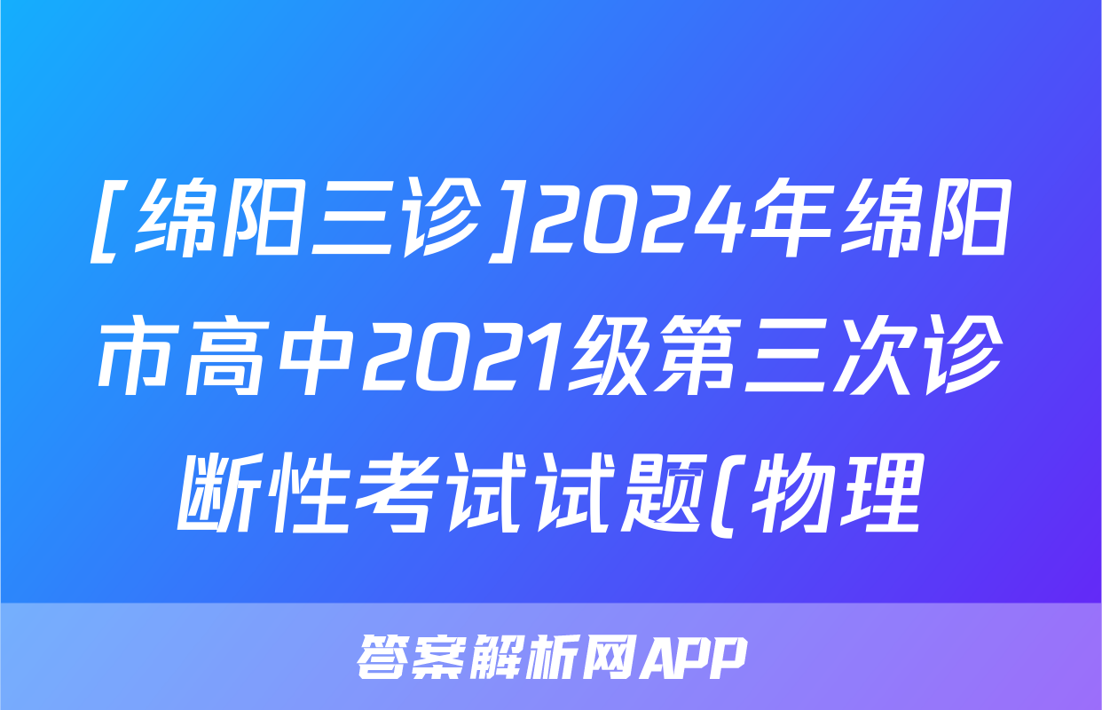 [绵阳三诊]2024年绵阳市高中2021级第三次诊断性考试试题(物理)正在持续更新,目前2026届黄冈八模答案网为大家整理了相关试题及答案,供大家查缺补漏,高效提升成绩。
