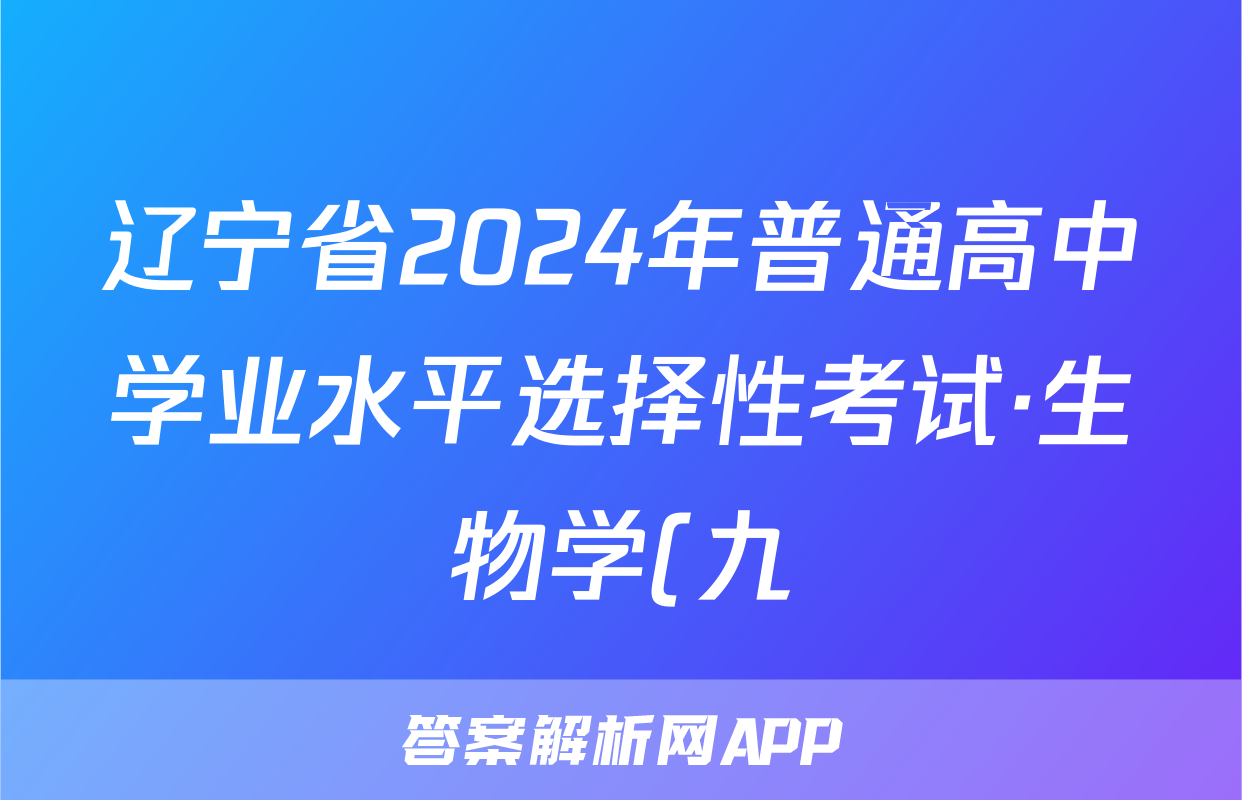 辽宁省2024年普通高中学业水平选择性考试·生物学(九)9[24·(新高考)ZX·MNJ·生物学·LN]试题正在持续更新,目前2026届黄冈八模答案网为大家整理了相关试题及答案,供大家查缺补漏,高效提升成绩。