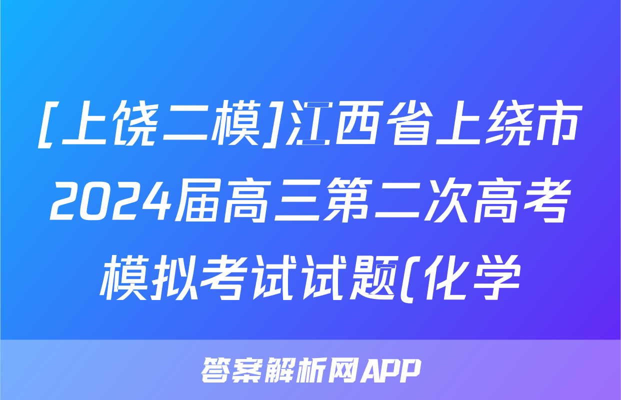 [上饶二模]江西省上绕市2024届高三第二次高考模拟考试试题(化学)正在持续更新,目前2026届黄冈八模答案网为大家整理了相关试题及答案,供大家查缺补漏,高效提升成绩。