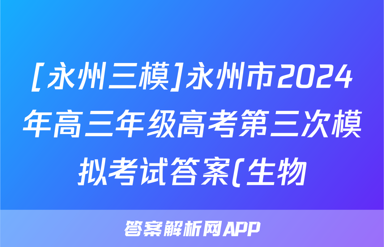 [永州三模]永州市2024年高三年级高考第三次模拟考试答案(生物)正在持续更新,目前2026届黄冈八模答案网为大家整理了相关试题及答案,供大家查缺补漏,高效提升成绩。