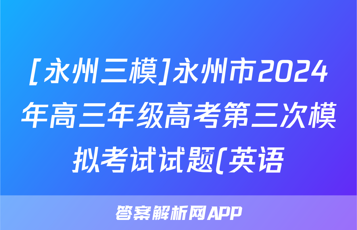 [永州三模]永州市2024年高三年级高考第三次模拟考试试题(英语)正在持续更新,目前2026届黄冈八模答案网为大家整理了相关试题及答案,供大家查缺补漏,高效提升成绩。