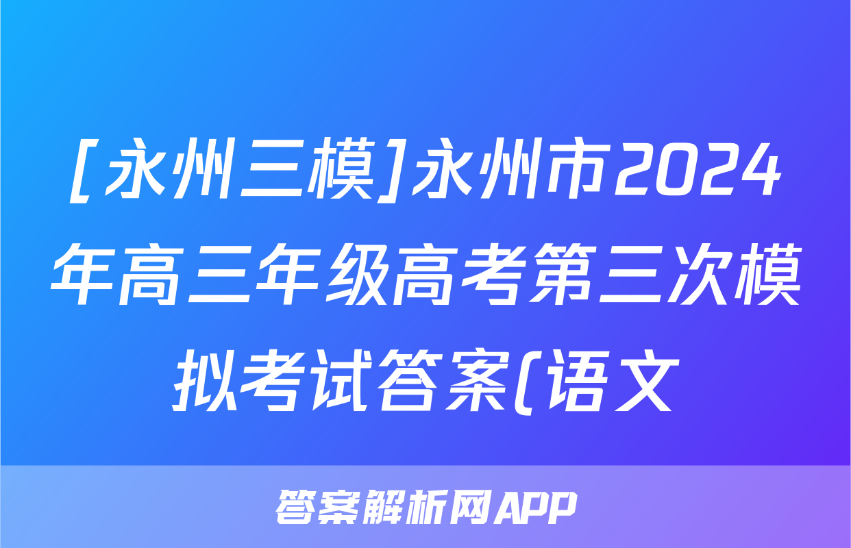 [永州三模]永州市2024年高三年级高考第三次模拟考试答案(语文)正在持续更新,目前2026届黄冈八模答案网为大家整理了相关试题及答案,供大家查缺补漏,高效提升成绩。