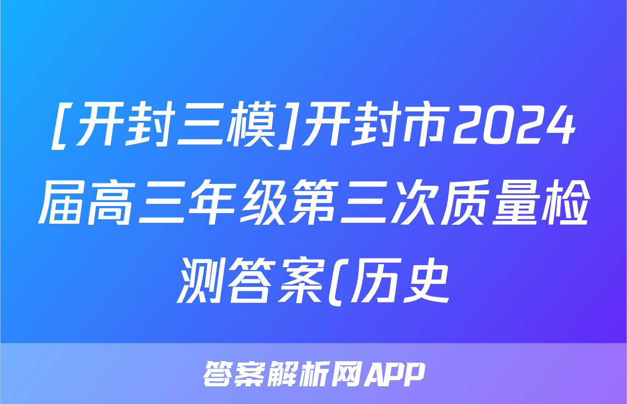[开封三模]开封市2024届高三年级第三次质量检测答案(历史)正在持续更新,目前2026届黄冈八模答案网为大家整理了相关试题及答案,供大家查缺补漏,高效提升成绩。