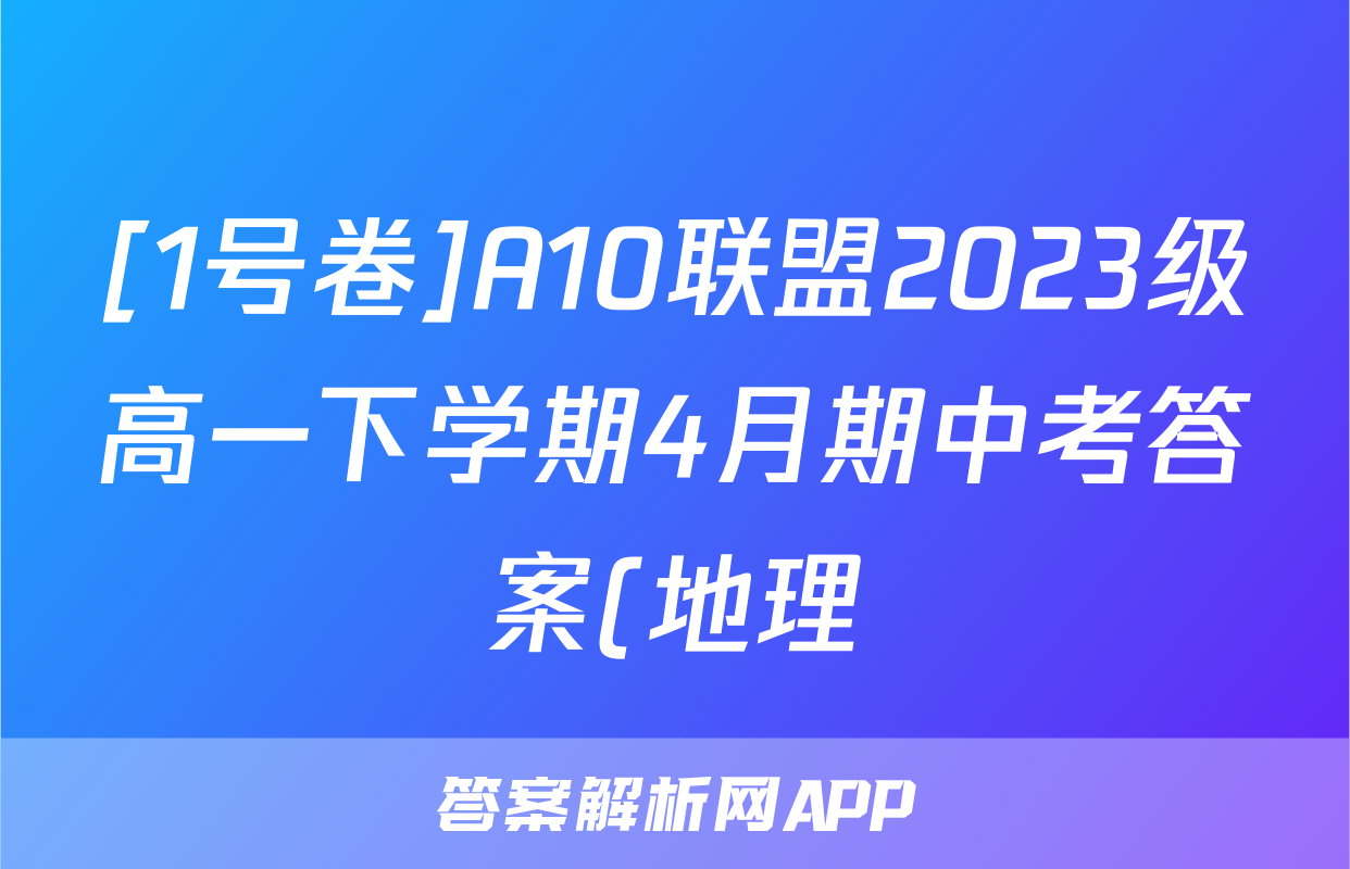 [1号卷]A10联盟2023级高一下学期4月期中考答案(地理)正在持续更新,目前2026届黄冈八模答案网为大家整理了相关试题及答案,供大家查缺补漏,高效提升成绩。