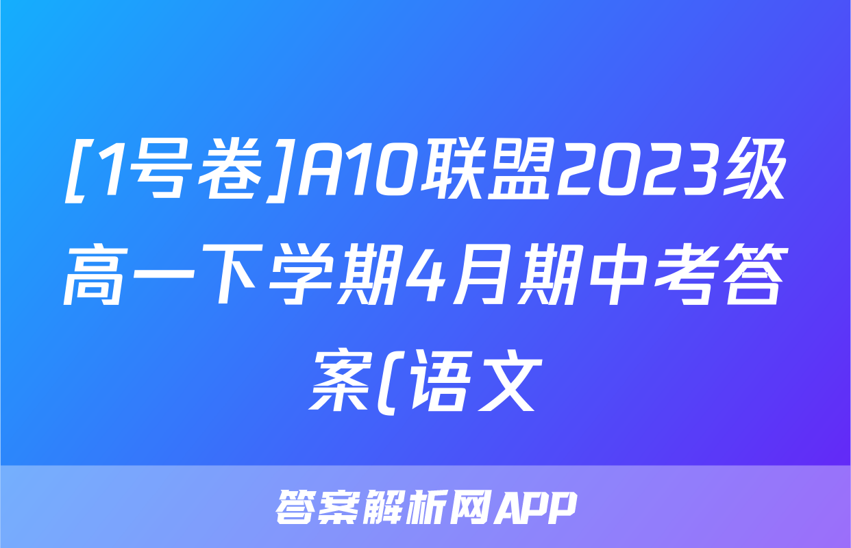 [1号卷]A10联盟2023级高一下学期4月期中考答案(语文)正在持续更新,目前2026届黄冈八模答案网为大家整理了相关试题及答案,供大家查缺补漏,高效提升成绩。