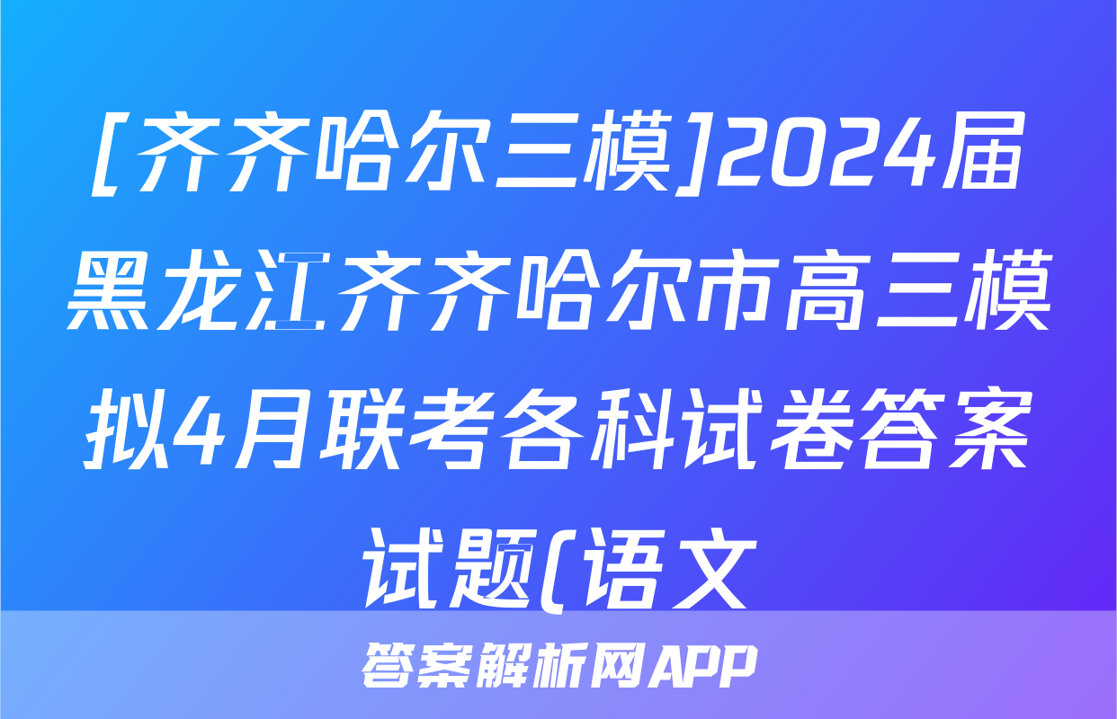 [齐齐哈尔三模]2024届黑龙江齐齐哈尔市高三模拟4月联考各科试卷答案试题(语文)正在持续更新,目前2026届黄冈八模答案网为大家整理了相关试题及答案,供大家查缺补漏,高效提升成绩。