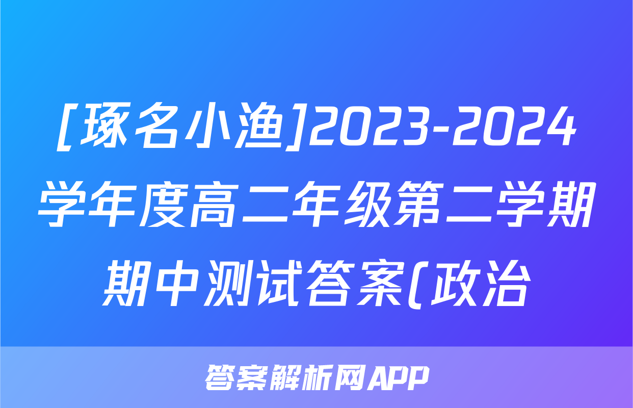[琢名小渔]2023-2024学年度高二年级第二学期期中测试答案(政治)正在持续更新,目前2026届黄冈八模答案网为大家整理了相关试题及答案,供大家查缺补漏,高效提升成绩。