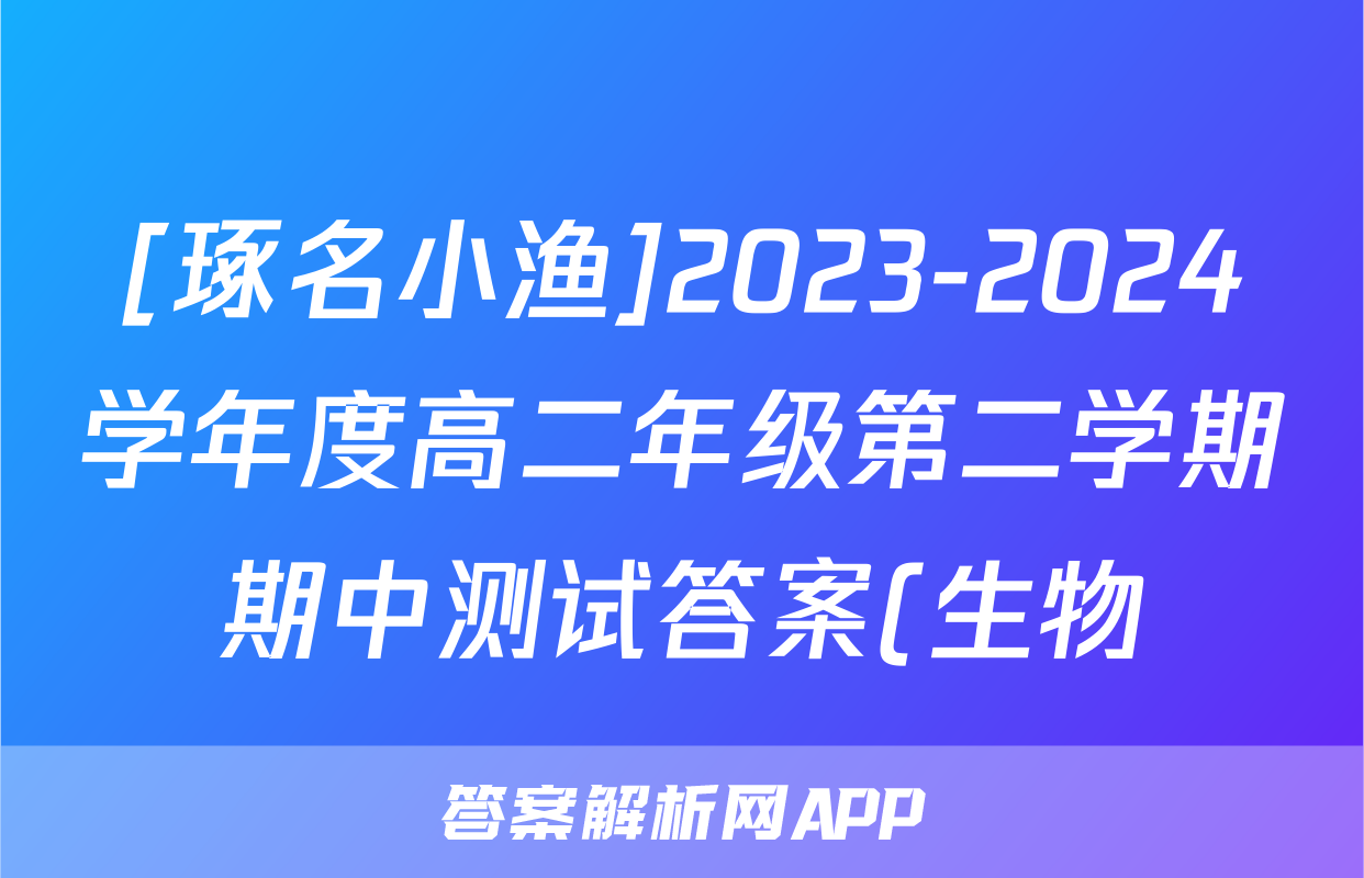 [琢名小渔]2023-2024学年度高二年级第二学期期中测试答案(生物)正在持续更新,目前2026届黄冈八模答案网为大家整理了相关试题及答案,供大家查缺补漏,高效提升成绩。