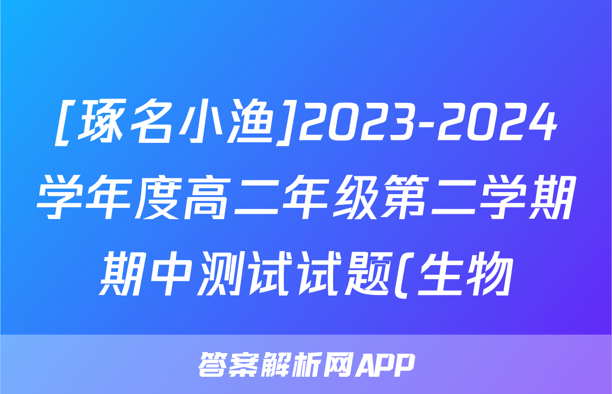 [琢名小渔]2023-2024学年度高二年级第二学期期中测试试题(生物)正在持续更新,目前2026届黄冈八模答案网为大家整理了相关试题及答案,供大家查缺补漏,高效提升成绩。