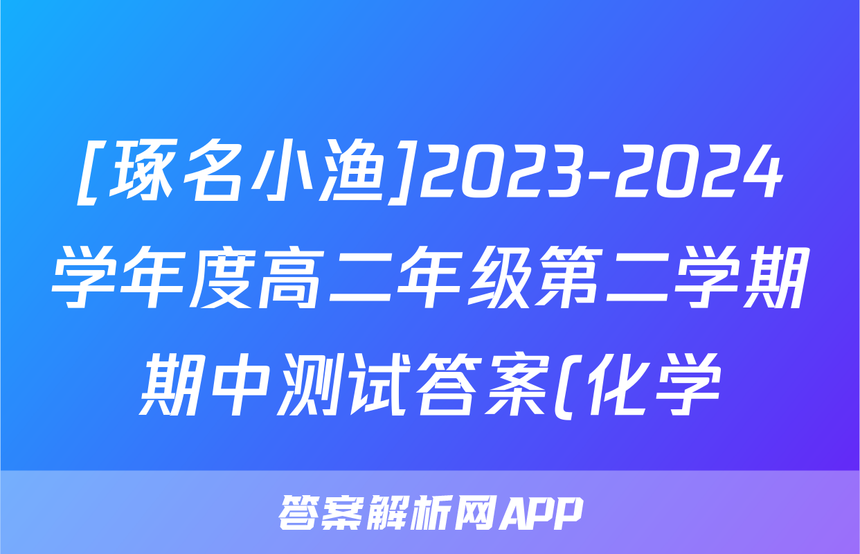 [琢名小渔]2023-2024学年度高二年级第二学期期中测试答案(化学)正在持续更新,目前2026届黄冈八模答案网为大家整理了相关试题及答案,供大家查缺补漏,高效提升成绩。