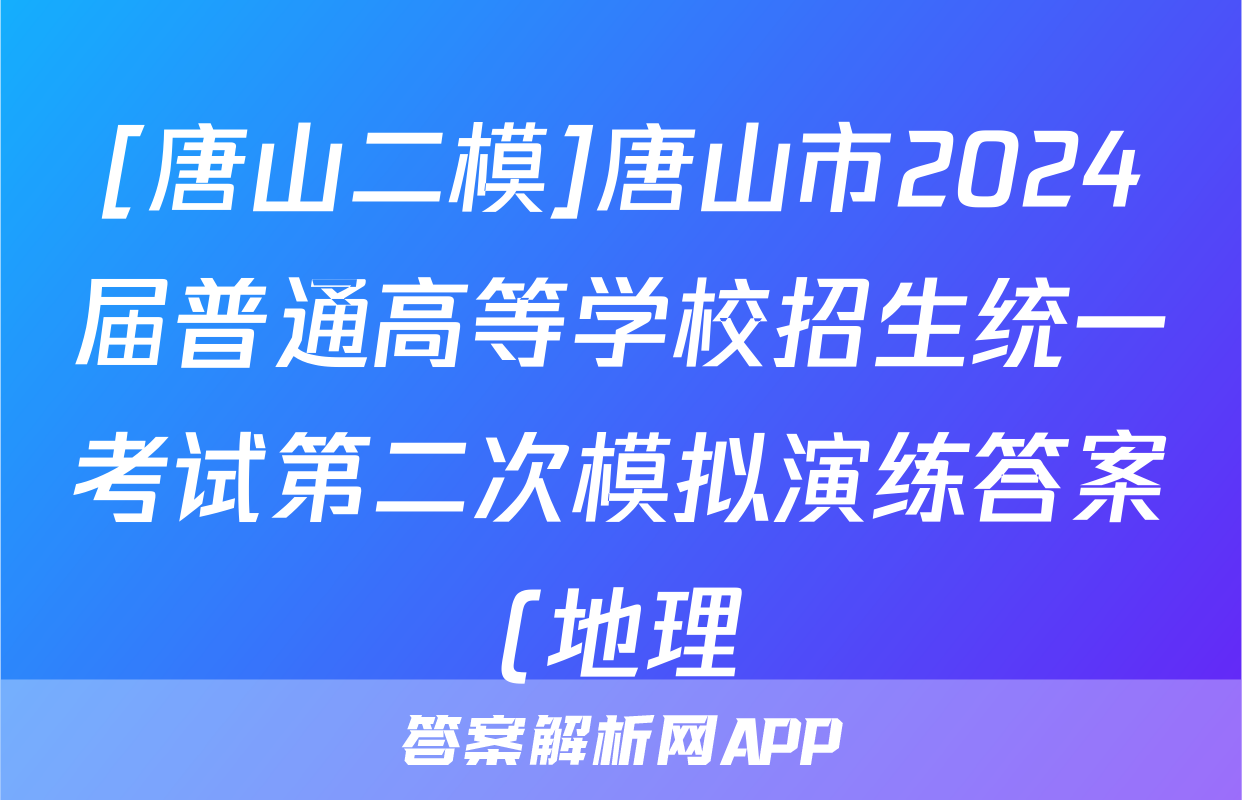 [唐山二模]唐山市2024届普通高等学校招生统一考试第二次模拟演练答案(地理)正在持续更新,目前2026届黄冈八模答案网为大家整理了相关试题及答案,供大家查缺补漏,高效提升成绩。