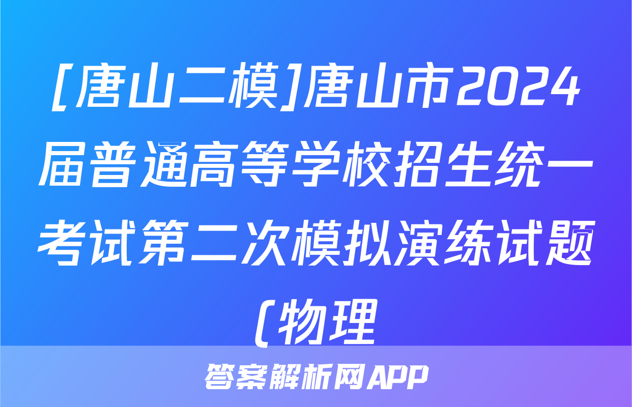 [唐山二模]唐山市2024届普通高等学校招生统一考试第二次模拟演练试题(物理)正在持续更新,目前2026届黄冈八模答案网为大家整理了相关试题及答案,供大家查缺补漏,高效提升成绩。