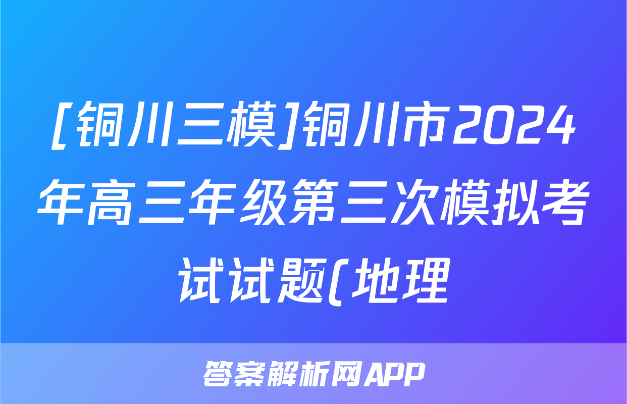 [铜川三模]铜川市2024年高三年级第三次模拟考试试题(地理)正在持续更新,目前2026届黄冈八模答案网为大家整理了相关试题及答案,供大家查缺补漏,高效提升成绩。