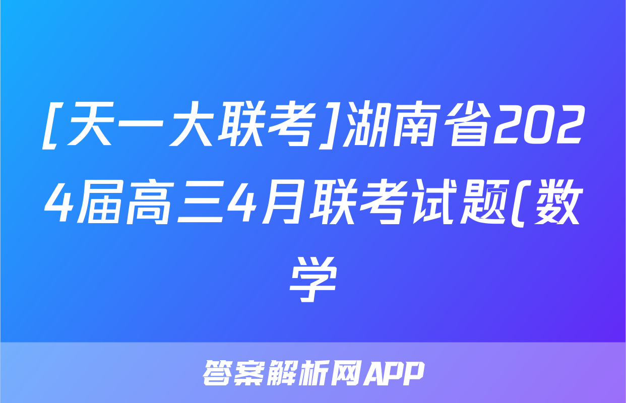 [天一大联考]湖南省2024届高三4月联考试题(数学)正在持续更新,目前2026届黄冈八模答案网为大家整理了相关试题及答案,供大家查缺补漏,高效提升成绩。