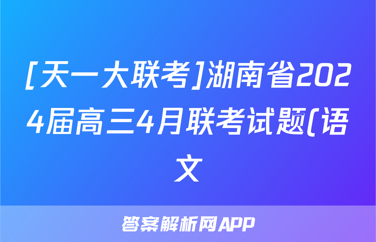 [天一大联考]湖南省2024届高三4月联考试题(语文)正在持续更新,目前2026届黄冈八模答案网为大家整理了相关试题及答案,供大家查缺补漏,高效提升成绩。