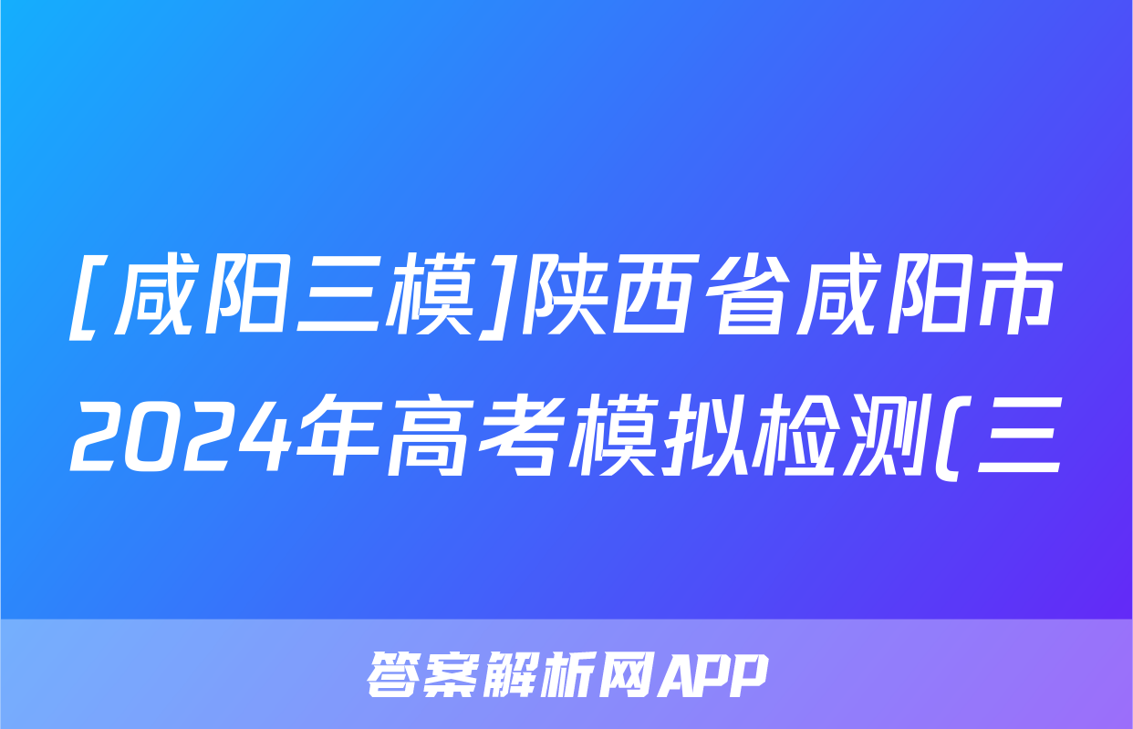 [咸阳三模]陕西省咸阳市2024年高考模拟检测(三)3试题(化学)正在持续更新,目前2026届黄冈八模答案网为大家整理了相关试题及答案,供大家查缺补漏,高效提升成绩。