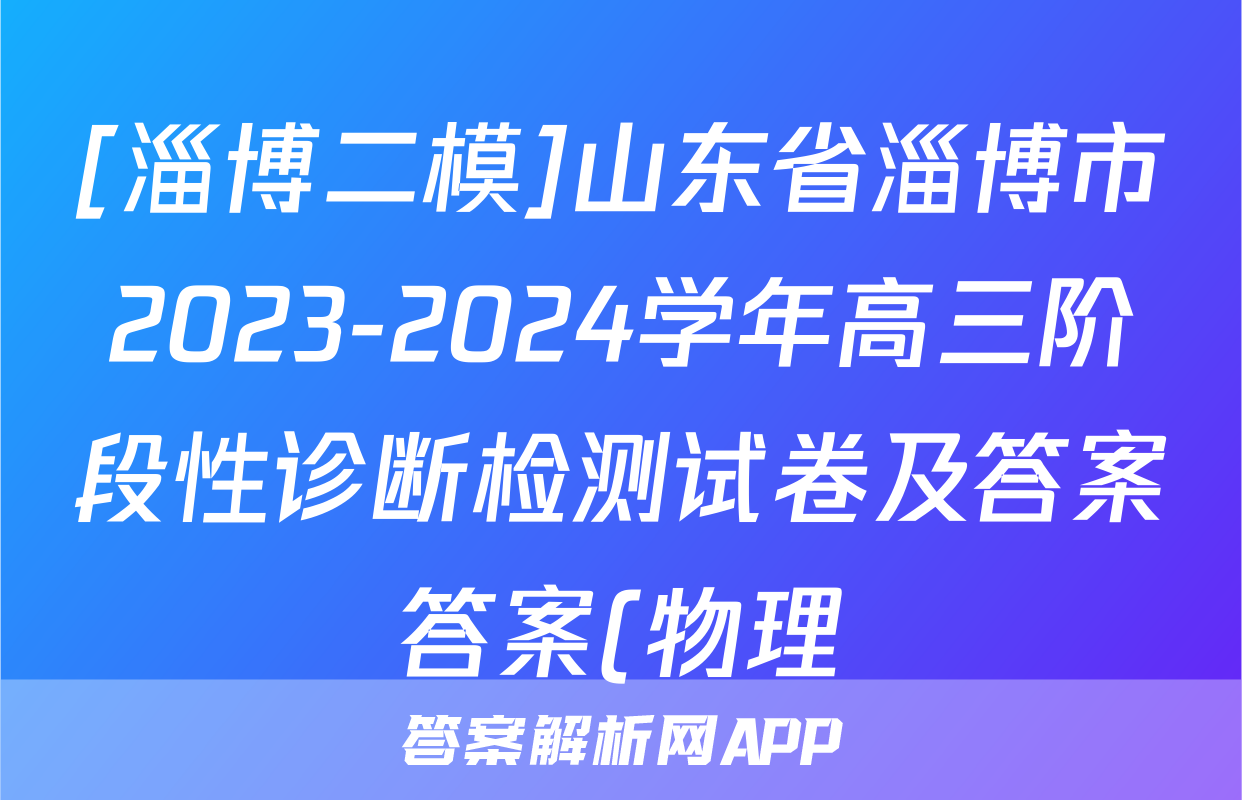 [淄博二模]山东省淄博市2023-2024学年高三阶段性诊断检测试卷及答案答案(物理)正在持续更新,目前2026届黄冈八模答案网为大家整理了相关试题及答案,供大家查缺补漏,高效提升成绩。