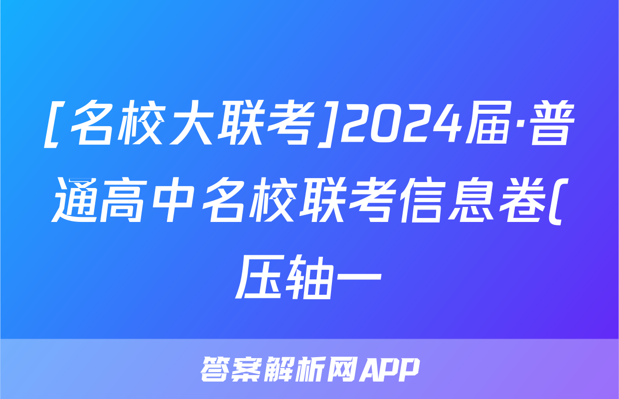 [名校大联考]2024届·普通高中名校联考信息卷(压轴一)试题(物理)正在持续更新,目前2026届黄冈八模答案网为大家整理了相关试题及答案,供大家查缺补漏,高效提升成绩。