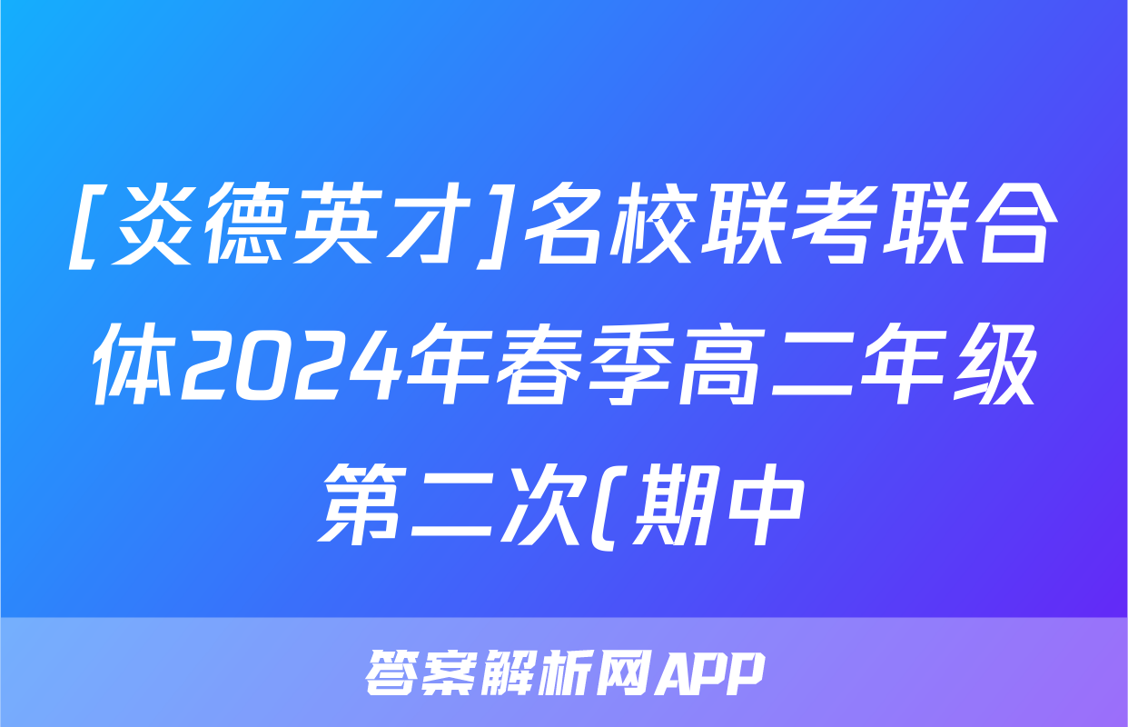 [炎德英才]名校联考联合体2024年春季高二年级第二次(期中)联考(4月)试题(语文)正在持续更新,目前2026届黄冈八模答案网为大家整理了相关试题及答案,供大家查缺补漏,高效提升成绩。