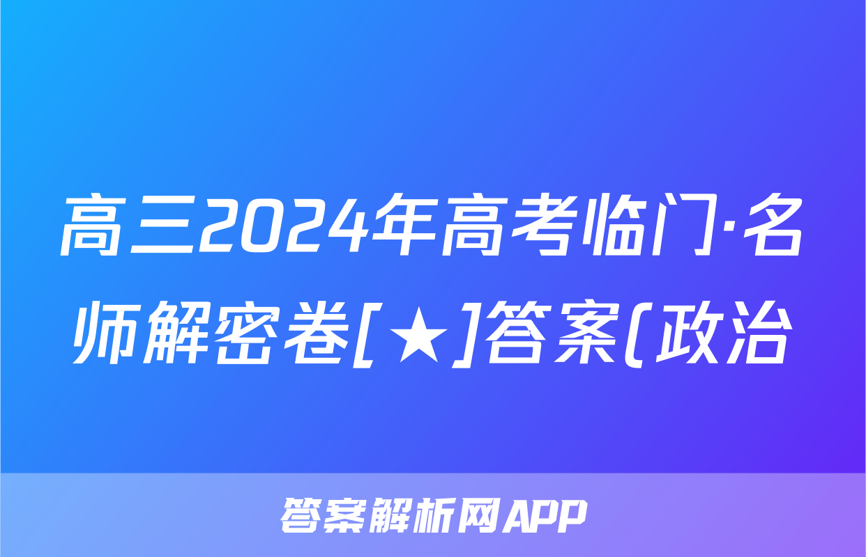 高三2024年高考临门·名师解密卷[★]答案(政治)正在持续更新,目前2026届黄冈八模答案网为大家整理了相关试题及答案,供大家查缺补漏,高效提升成绩。