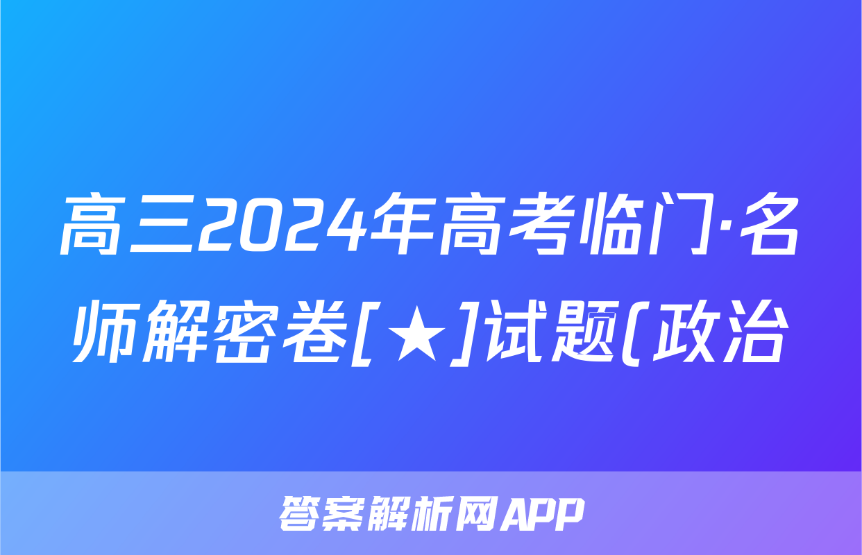 高三2024年高考临门·名师解密卷[★]试题(政治)正在持续更新,目前2026届黄冈八模答案网为大家整理了相关试题及答案,供大家查缺补漏,高效提升成绩。