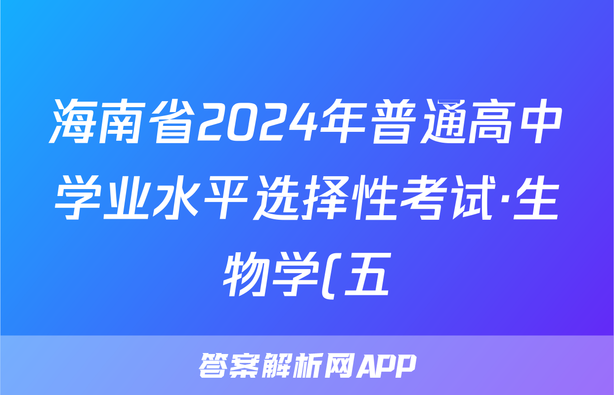 海南省2024年普通高中学业水平选择性考试·生物学(五)5[24·(新高考)ZX·MNJ·生物学·HAIN]答案正在持续更新,目前2026届黄冈八模答案网为大家整理了相关试题及答案,供大家查缺补漏,高效提升成绩。