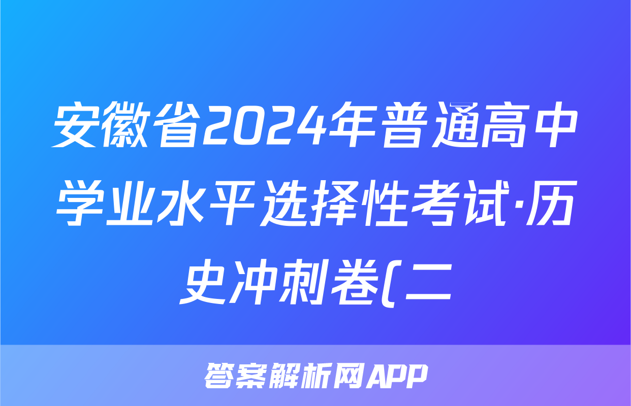安徽省2024年普通高中学业水平选择性考试·历史冲刺卷(二)2[24·(新高考)CCJ·历史·AH]试题正在持续更新,目前2026届黄冈八模答案网为大家整理了相关试题及答案,供大家查缺补漏,高效提升成绩。