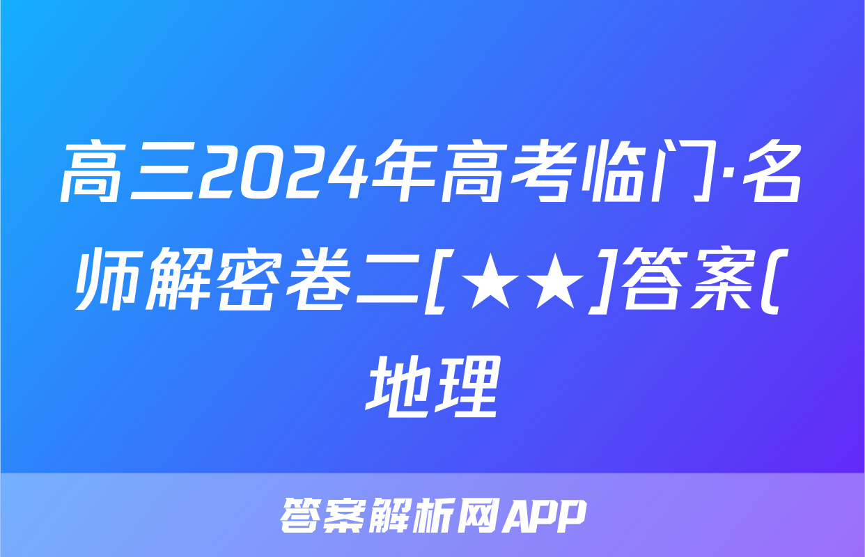 高三2024年高考临门·名师解密卷二[★★]答案(地理)正在持续更新,目前2026届黄冈八模答案网为大家整理了相关试题及答案,供大家查缺补漏,高效提升成绩。