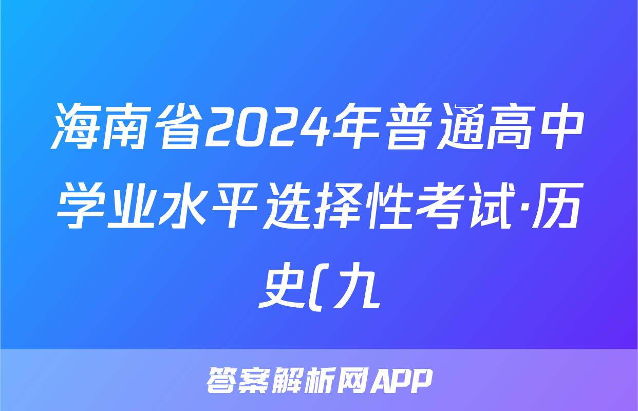 海南省2024年普通高中学业水平选择性考试·历史(九)9[24·(新高考)ZX·MNJ·历史·HAIN]答案正在持续更新,目前2026届黄冈八模答案网为大家整理了相关试题及答案,供大家查缺补漏,高效提升成绩。