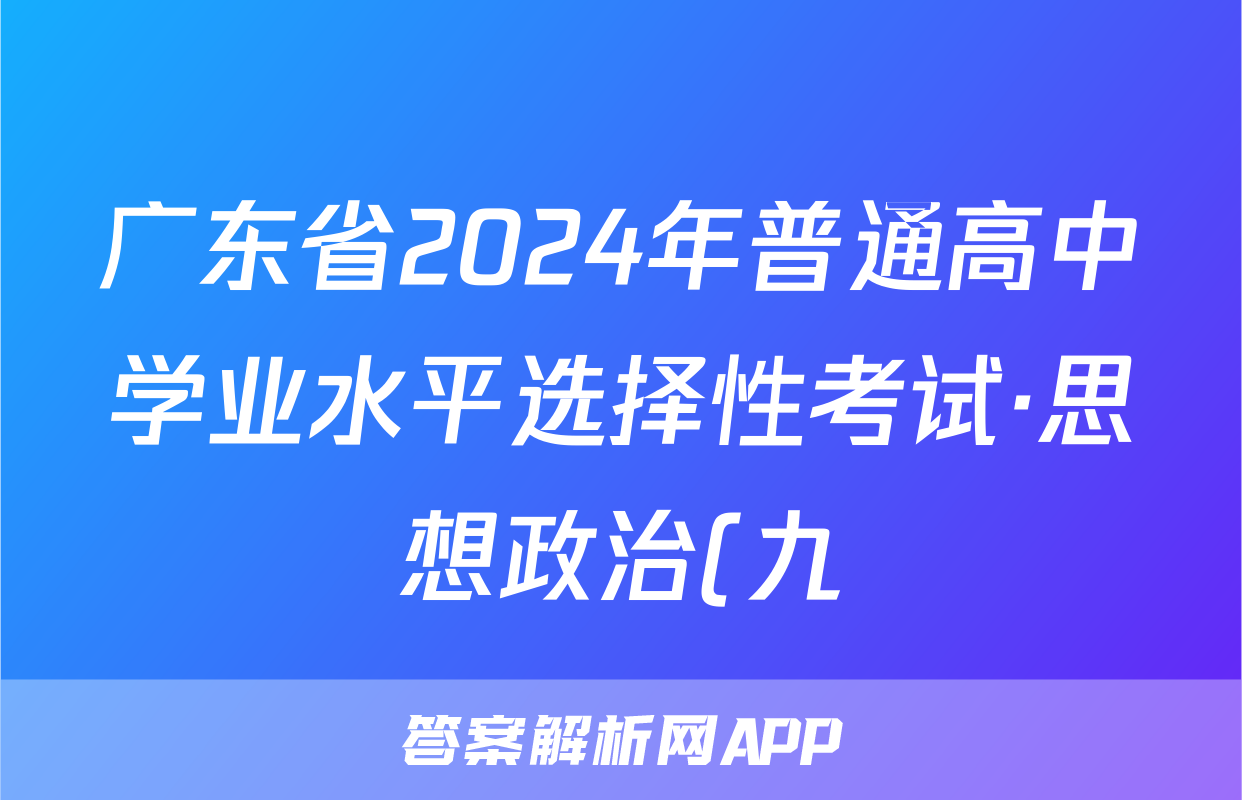 广东省2024年普通高中学业水平选择性考试·思想政治(九)9[24·(新高考)ZX·MNJ·思想政治·G DONG]试题正在持续更新,目前2026届黄冈八模答案网为大家整理了相关试题及答案,供大家查缺补漏,高效提升成绩。
