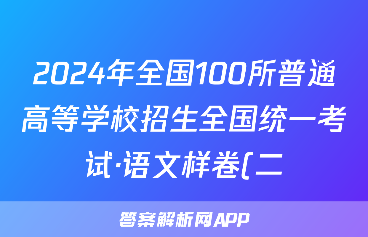 2024年全国100所普通高等学校招生全国统一考试·语文样卷(二)2[24·(新高考)高考样卷·语文·Y]答案正在持续更新,目前2026届黄冈八模答案网为大家整理了相关试题及答案,供大家查缺补漏,高效提升成绩。