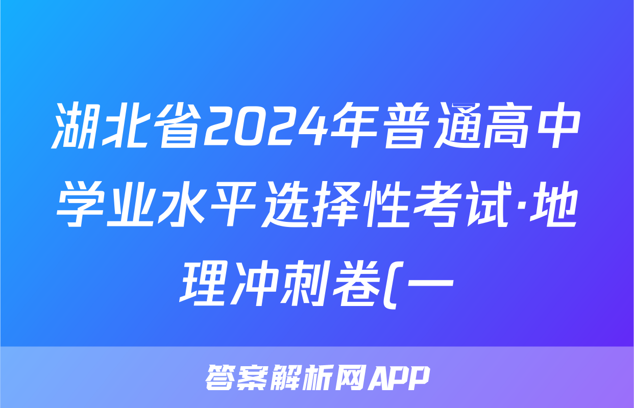 湖北省2024年普通高中学业水平选择性考试·地理冲刺卷(一)1[24·(新高考)CCJ·地理·HUB]答案正在持续更新,目前2026届黄冈八模答案网为大家整理了相关试题及答案,供大家查缺补漏,高效提升成绩。