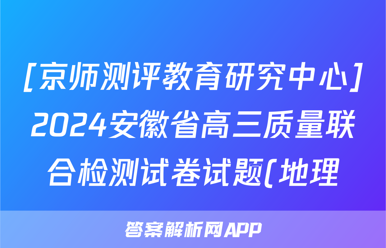 [京师测评教育研究中心]2024安徽省高三质量联合检测试卷试题(地理)正在持续更新,目前2026届黄冈八模答案网为大家整理了相关试题及答案,供大家查缺补漏,高效提升成绩。