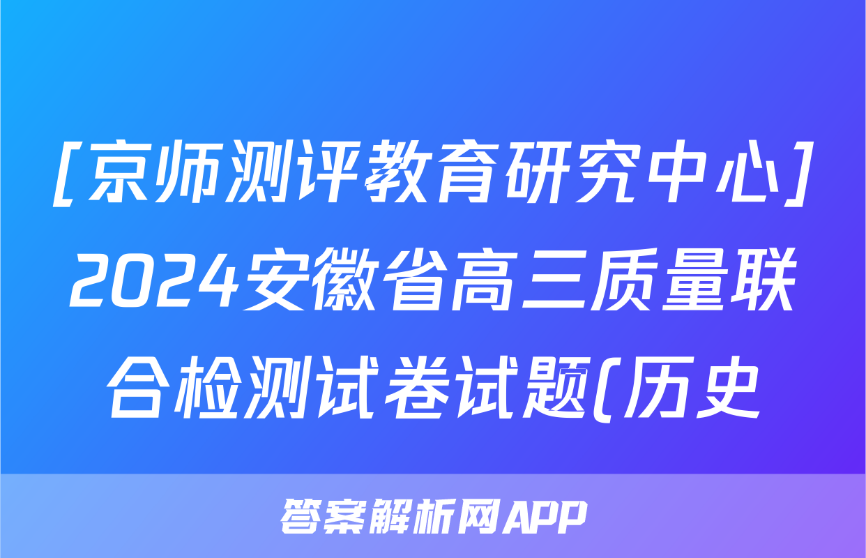4、京师测评教育研究中心 2024安徽省高三质量联合检测试卷各科试卷答案答案(历史)