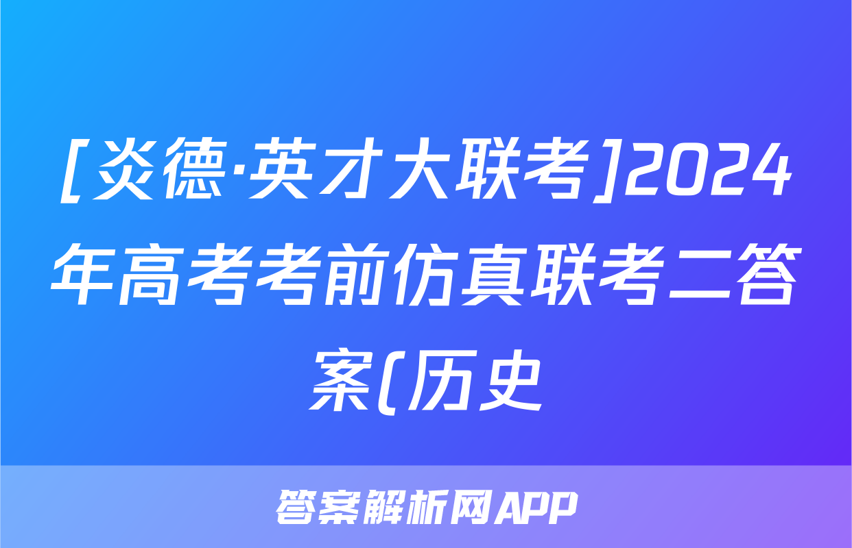 [炎德·英才大联考]2024年高考考前仿真联考二答案(历史)正在持续更新,目前2026届黄冈八模答案网为大家整理了相关试题及答案,供大家查缺补漏,高效提升成绩。