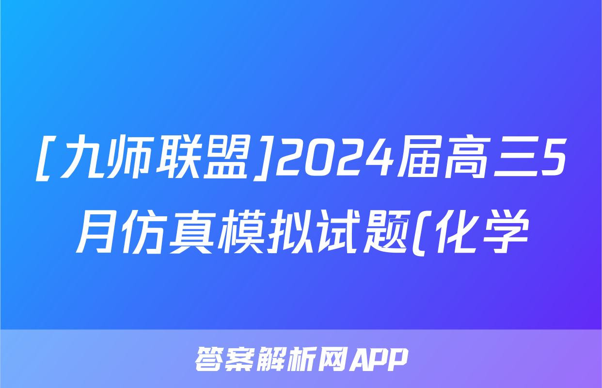 [九师联盟]2024届高三5月仿真模拟试题(化学)正在持续更新,目前2026届黄冈八模答案网为大家整理了相关试题及答案,供大家查缺补漏,高效提升成绩。