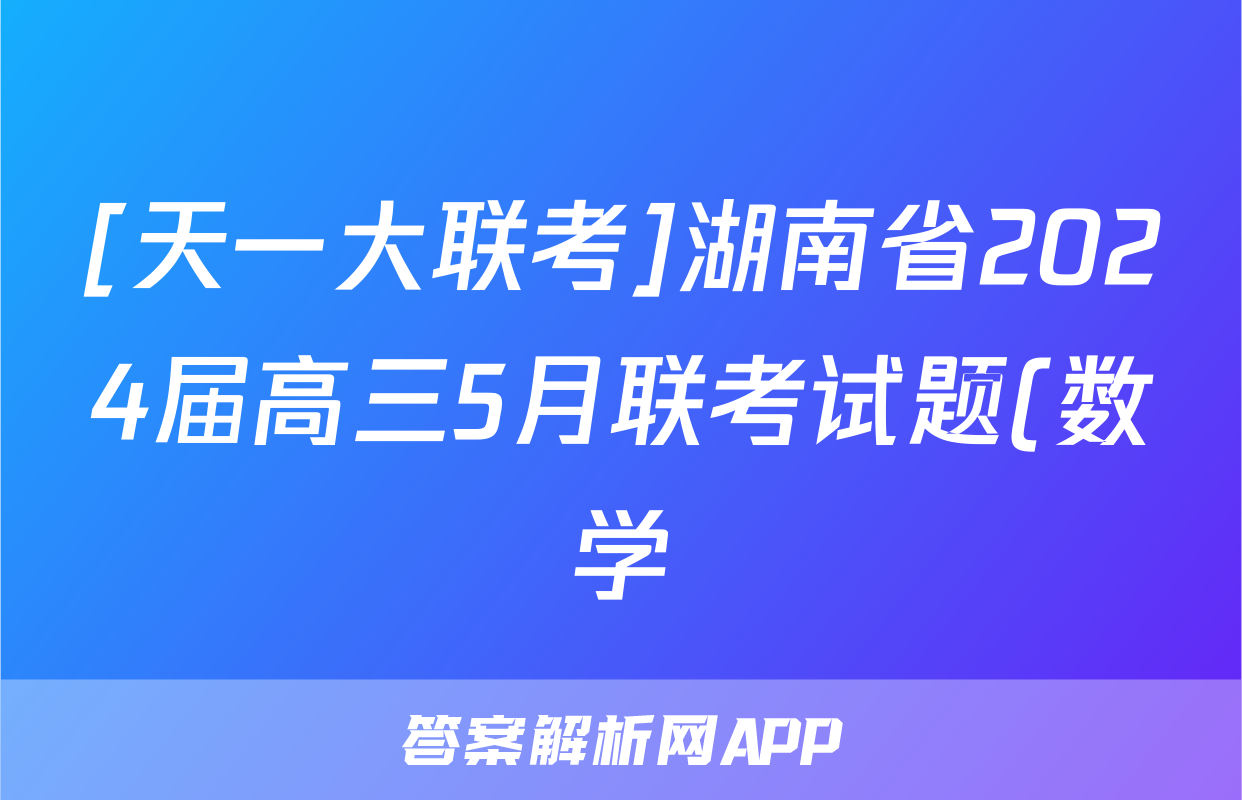 [天一大联考]湖南省2024届高三5月联考试题(数学)正在持续更新,目前2026届黄冈八模答案网为大家整理了相关试题及答案,供大家查缺补漏,高效提升成绩。
