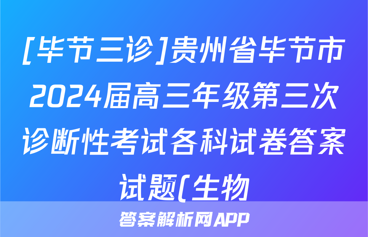 [毕节三诊]贵州省毕节市2024届高三年级第三次诊断性考试各科试卷答案试题(生物)正在持续更新,目前2026届黄冈八模答案网为大家整理了相关试题及答案,供大家查缺补漏,高效提升成绩。