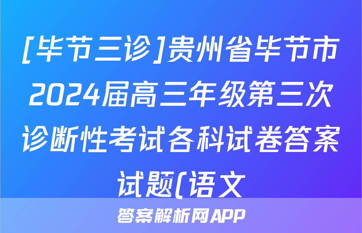 [毕节三诊]贵州省毕节市2024届高三年级第三次诊断性考试各科试卷答案试题(语文)正在持续更新,目前2026届黄冈八模答案网为大家整理了相关试题及答案,供大家查缺补漏,高效提升成绩。