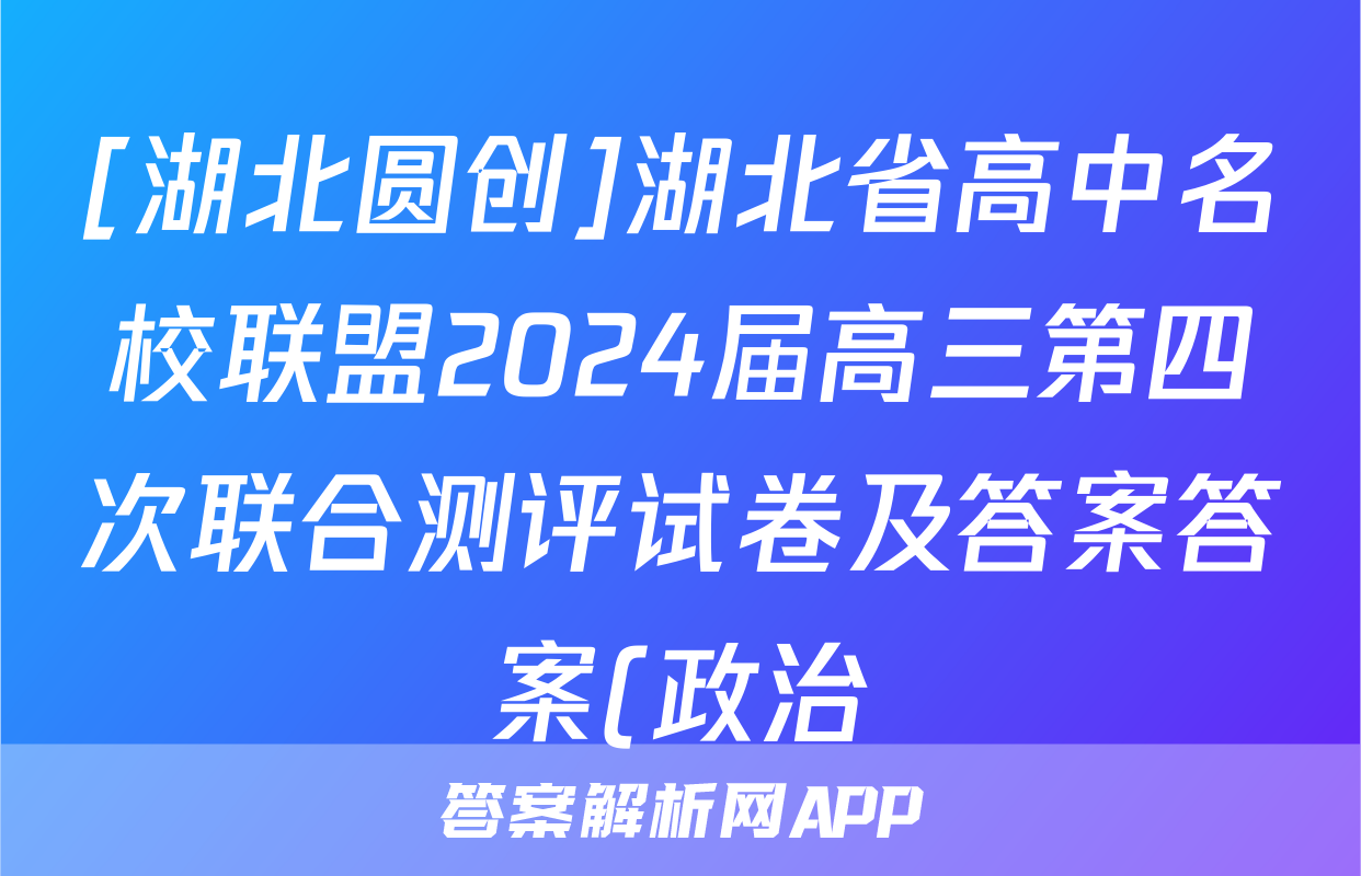 [湖北圆创]湖北省高中名校联盟2024届高三第四次联合测评试卷及答案答案(政治)正在持续更新,目前2026届黄冈八模答案网为大家整理了相关试题及答案,供大家查缺补漏,高效提升成绩。