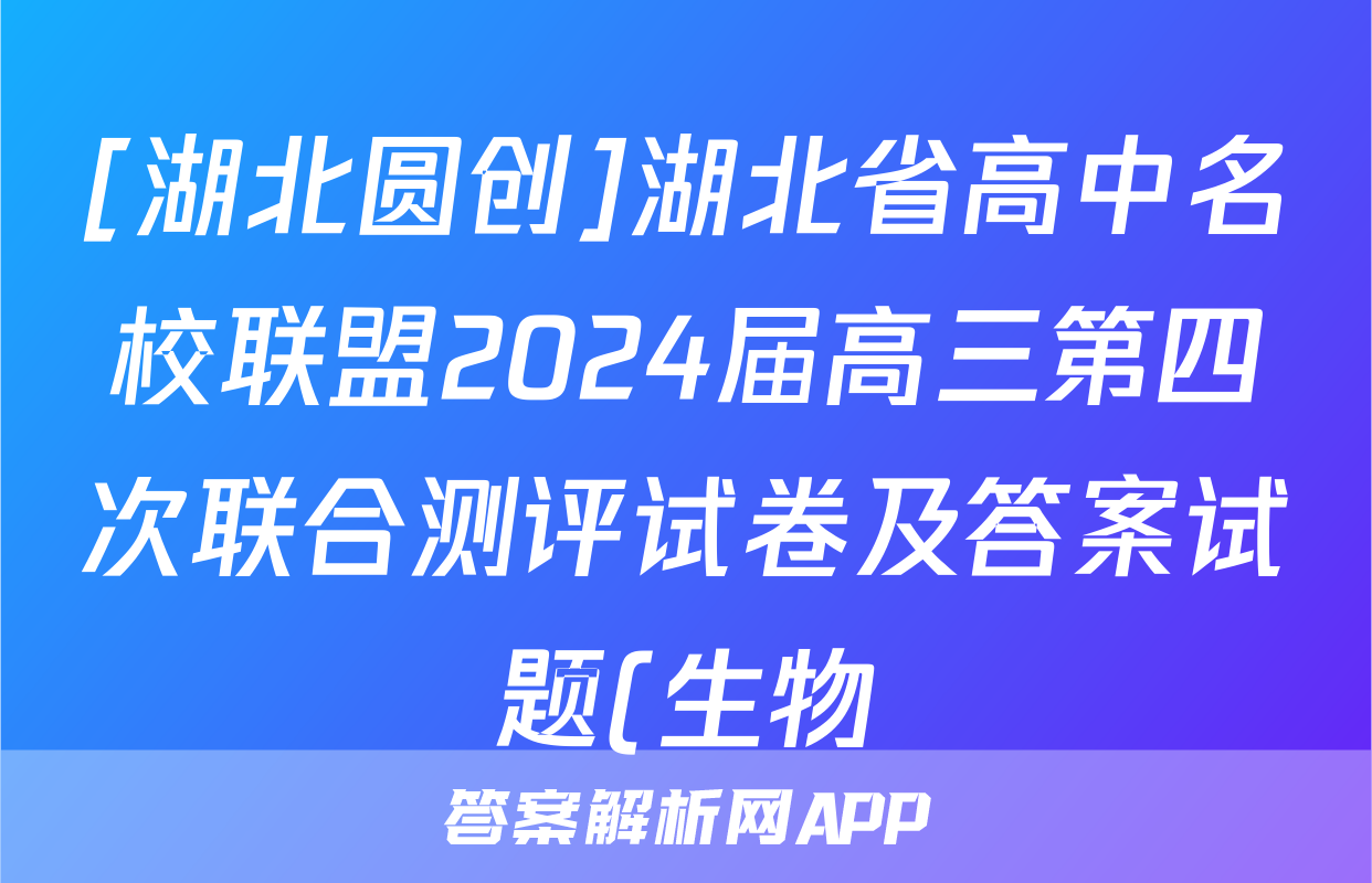 [湖北圆创]湖北省高中名校联盟2024届高三第四次联合测评试卷及答案试题(生物)正在持续更新,目前2026届黄冈八模答案网为大家整理了相关试题及答案,供大家查缺补漏,高效提升成绩。