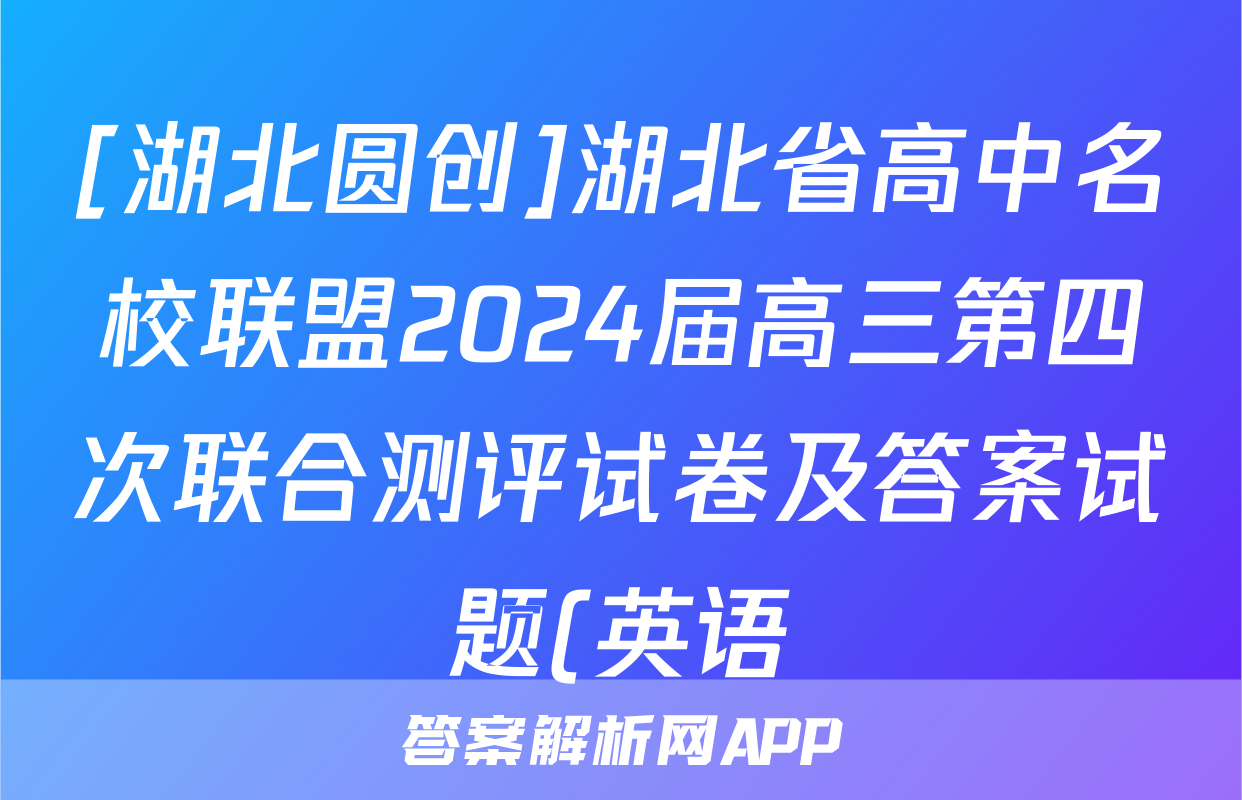 [湖北圆创]湖北省高中名校联盟2024届高三第四次联合测评试卷及答案试题(英语)正在持续更新,目前2026届黄冈八模答案网为大家整理了相关试题及答案,供大家查缺补漏,高效提升成绩。