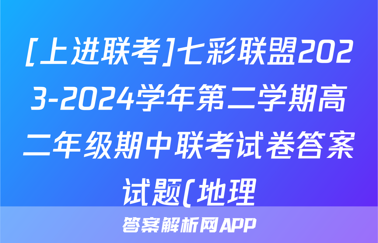 [上进联考]七彩联盟2023-2024学年第二学期高二年级期中联考试卷答案试题(地理)正在持续更新,目前2026届黄冈八模答案网为大家整理了相关试题及答案,供大家查缺补漏,高效提升成绩。
