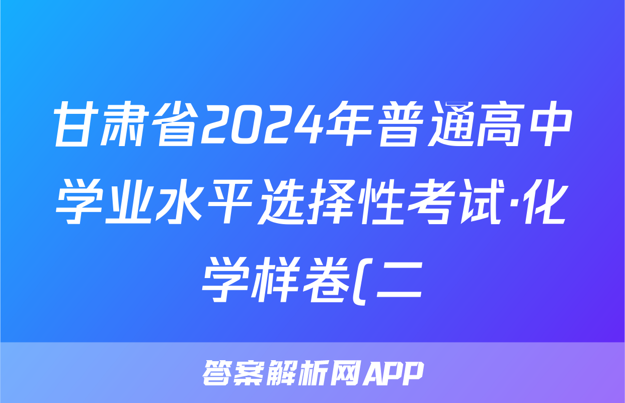甘肃省2024年普通高中学业水平选择性考试·化学样卷(二)2[24·(新高考)高考样卷·化学·GS]试题正在持续更新,目前2026届黄冈八模答案网为大家整理了相关试题及答案,供大家查缺补漏,高效提升成绩。