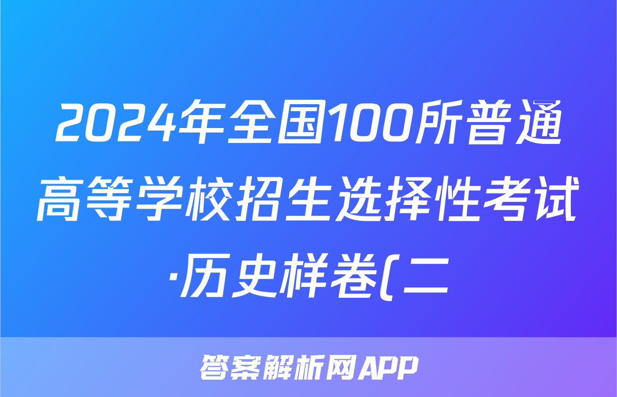 2024年全国100所普通高等学校招生选择性考试·历史样卷(二)2[24·(新高考)高考样卷·历史·JH]试题正在持续更新,目前2026届黄冈八模答案网为大家整理了相关试题及答案,供大家查缺补漏,高效提升成绩。