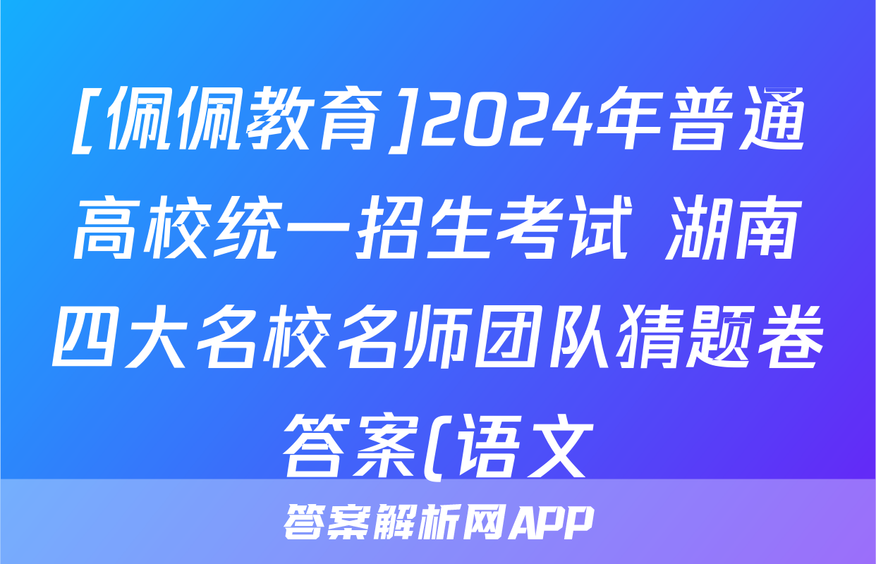 [佩佩教育]2024年普通高校统一招生考试 湖南四大名校名师团队猜题卷答案(语文)正在持续更新,目前2026届黄冈八模答案网为大家整理了相关试题及答案,供大家查缺补漏,高效提升成绩。
