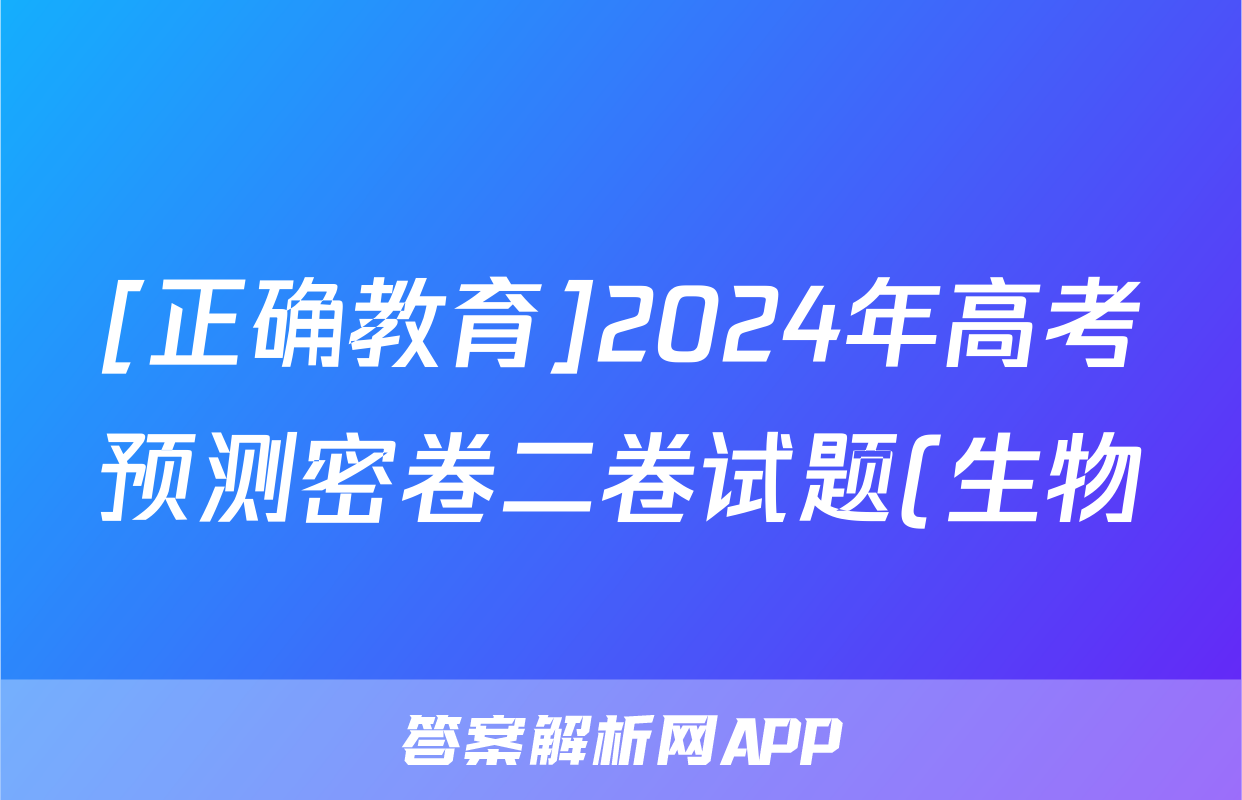 [正确教育]2024年高考预测密卷二卷试题(生物)正在持续更新,目前2026届黄冈八模答案网为大家整理了相关试题及答案,供大家查缺补漏,高效提升成绩。