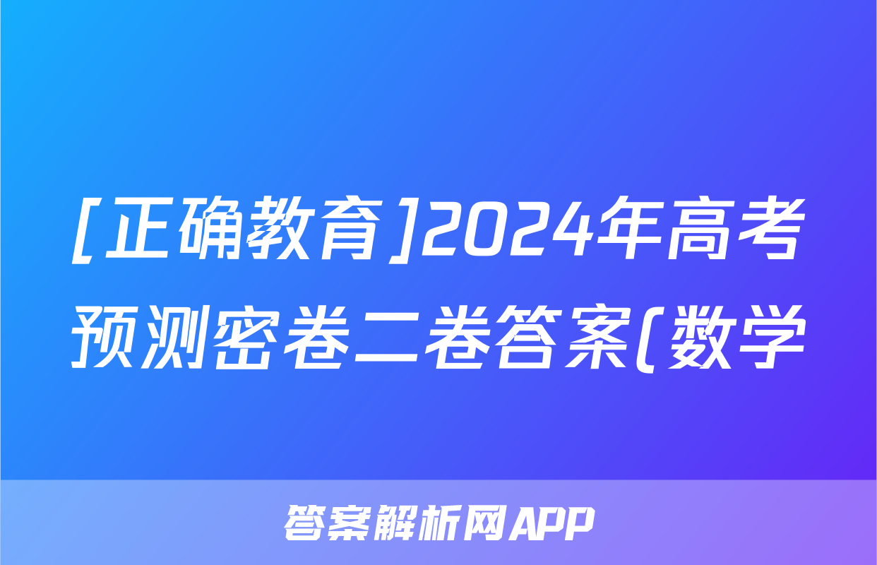 [正确教育]2024年高考预测密卷二卷答案(数学)正在持续更新,目前2026届黄冈八模答案网为大家整理了相关试题及答案,供大家查缺补漏,高效提升成绩。