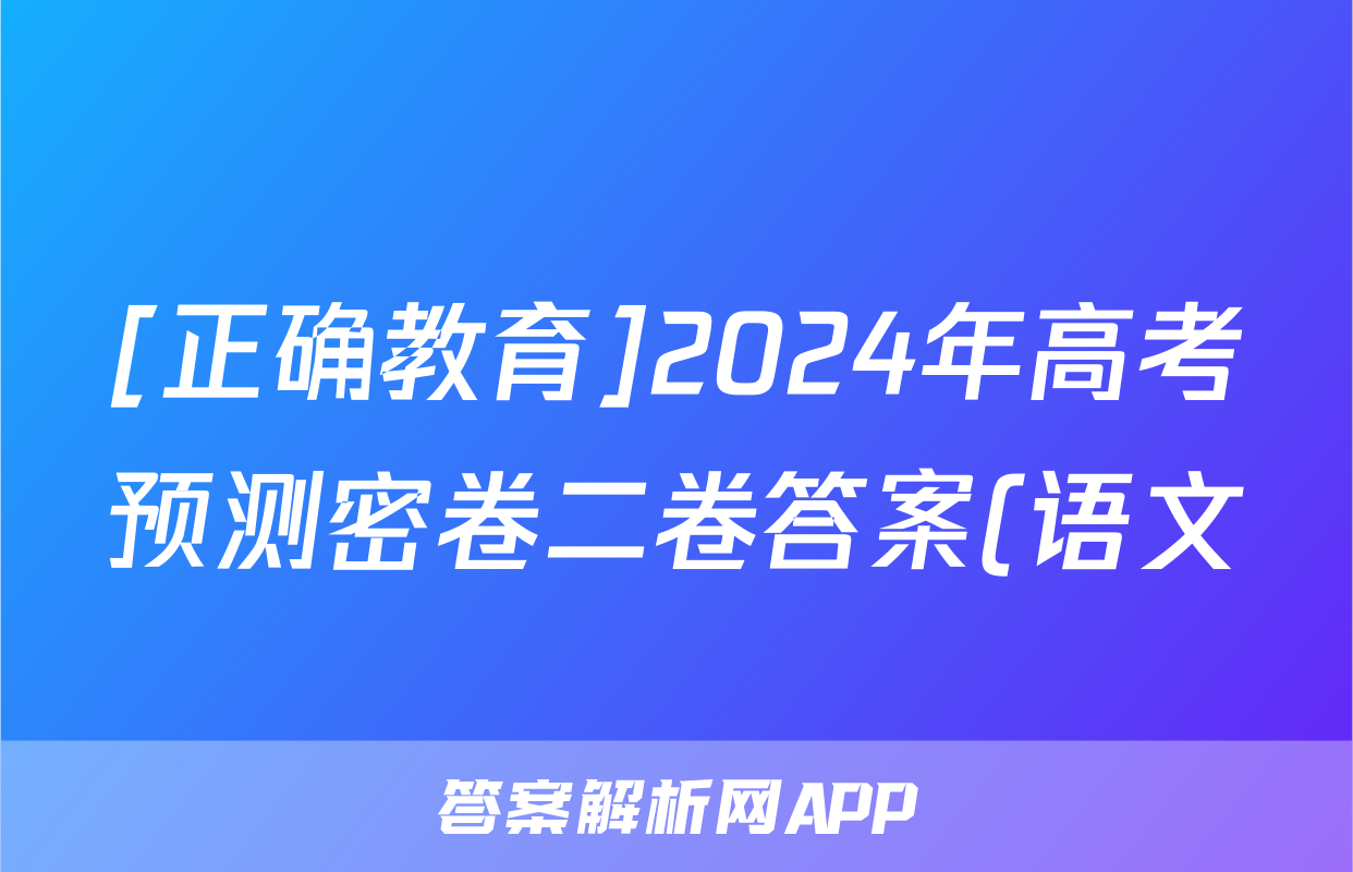 [正确教育]2024年高考预测密卷二卷答案(语文)正在持续更新,目前2026届黄冈八模答案网为大家整理了相关试题及答案,供大家查缺补漏,高效提升成绩。