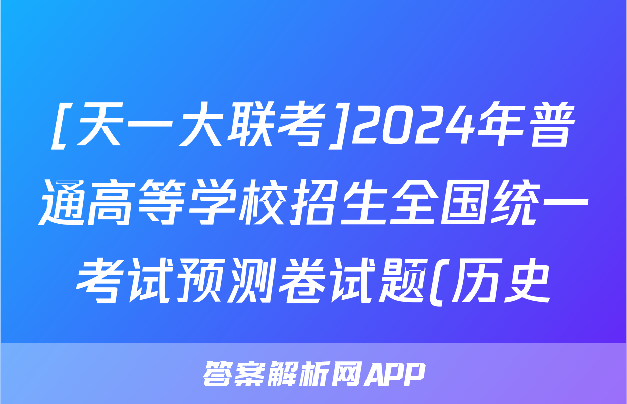 [天一大联考]2024年普通高等学校招生全国统一考试预测卷试题(历史)正在持续更新,目前2026届黄冈八模答案网为大家整理了相关试题及答案,供大家查缺补漏,高效提升成绩。
